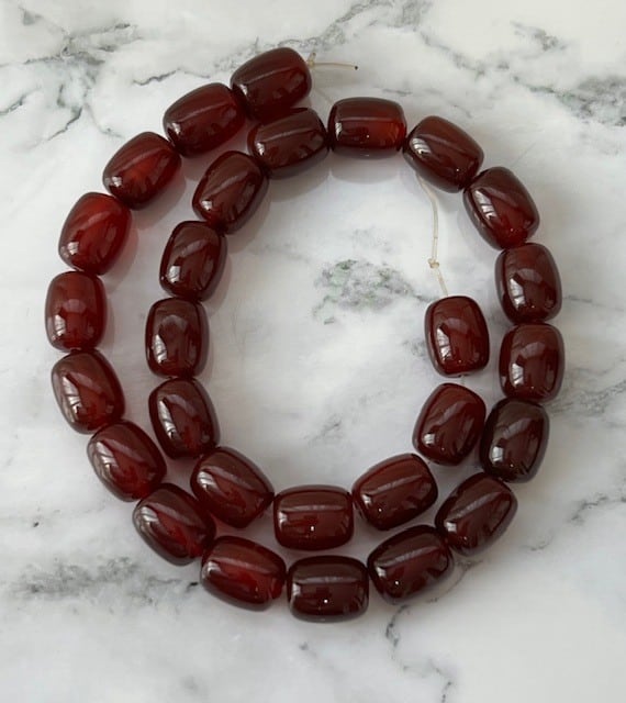 31. 赤メノウ 樽型 11×14mm 連売り